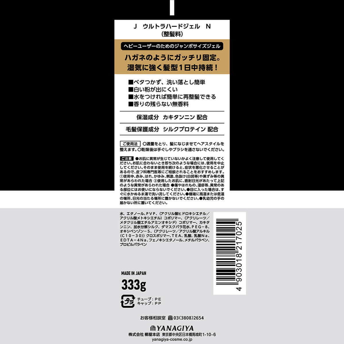 【送料込・まとめ買い×2個セット】柳屋本店 J ウルトラハードジェル N 無香料 333g ヘアジェル