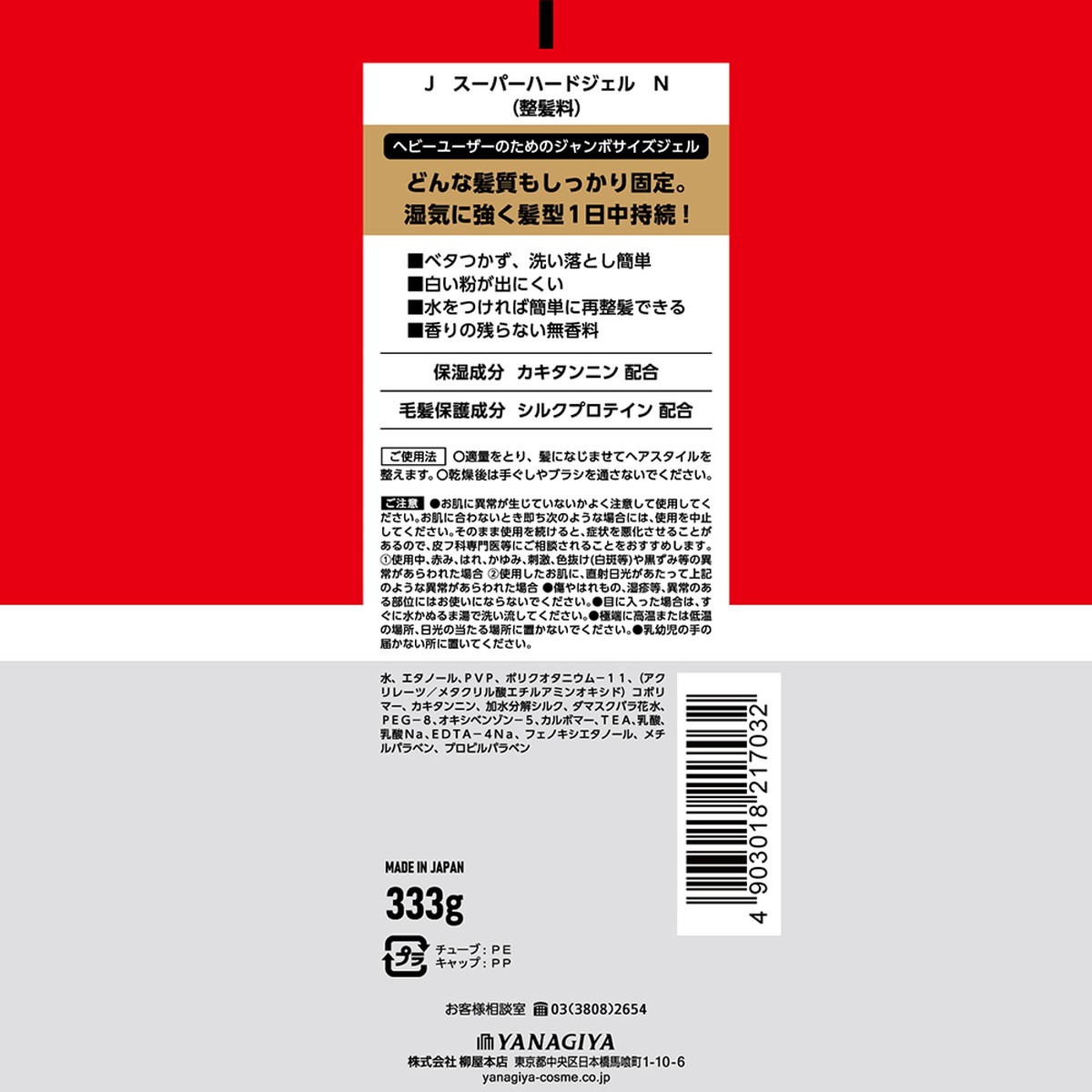 【送料込・まとめ買い×2個セット】柳屋本店 J スーパーハードジェル N 無香料 333g ヘアジェル