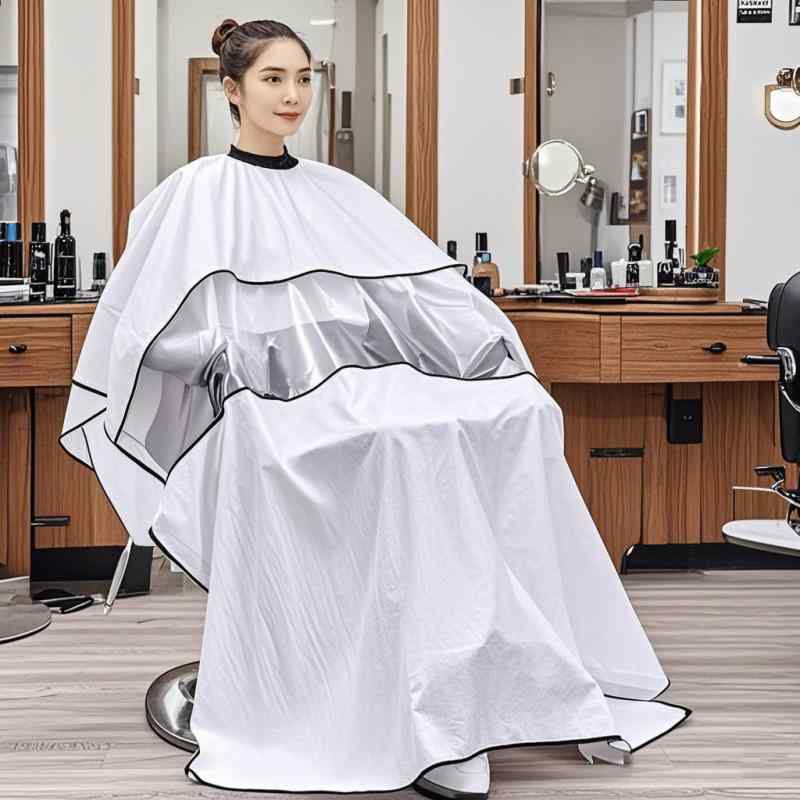 散髪ケープ 大人用 ヘアーエプロン 形状記憶 静電気防止 撥水加工 美容室 理容室 プロ用 自宅 セルフカット カットクロス ロング丈 足元までカバー 透け窓付き ホワイト ブラック グレー 高級感