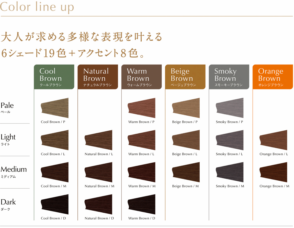 黒髪にも白髪にも透明感のある色味がしっかり発色