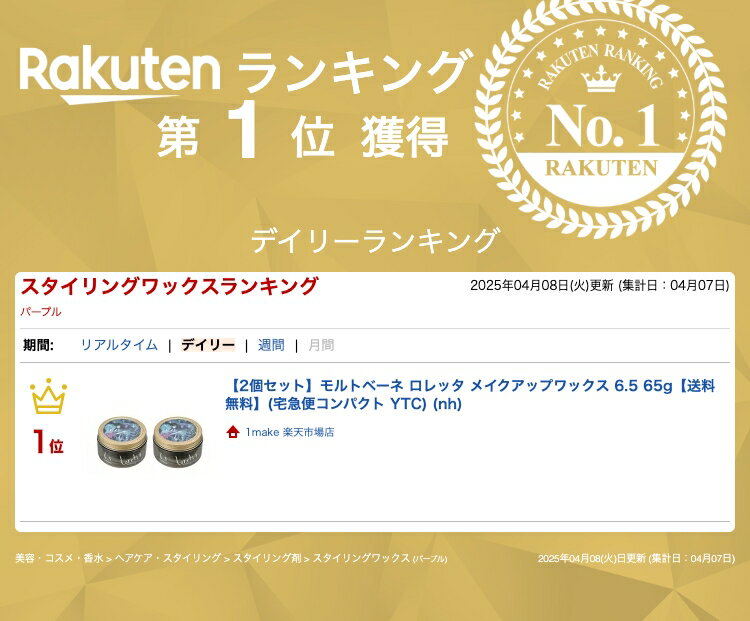 ↑メイクアップワックス2.5↑ ↑メイクアップワックス6.0↑ 商品詳細 商品名 メイクアップワックス4.0 メーカー MoltBene(モルトベーネ) シリーズ Loretta(ロレッタ) 内容量 65g 商品説明 ストレートヘアにも、ウェーブヘアにもおすすめ! ほどよい軽さとキープ力で、弾むような毛先の動きを表現。 狙ったウェーブや質感を一日中楽しめます。 セット力があるのにベタつかない、植物...