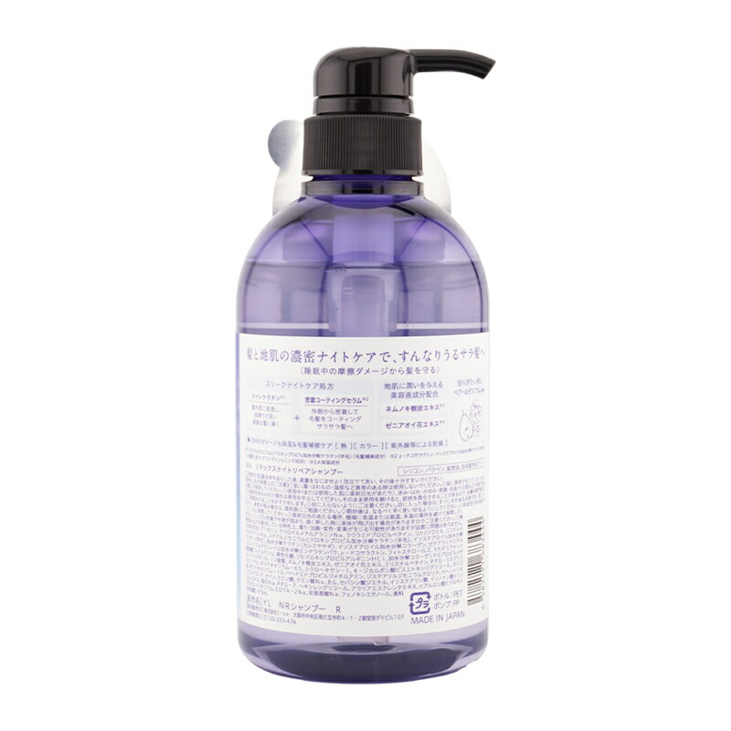 JAN 4582521683444 【商品説明】 ◇スリークナイトケア処方・ナイトケラチン(髪内部に浸透し、指通りの良い素直な髪に導く)+密着コーティングセラム(外側から密着して毛髪をコーティング) ◇地肌に潤いを与える美容液成分配合 ◇安らぎたい夜に / ペアー&ゼラニウムの香り ◇日中のダメージも保湿&毛髪補修ケア[ 熱 ] [ カラー ] [ 紫外線等による乾燥 ] ◇ シリコン、パラベン、...