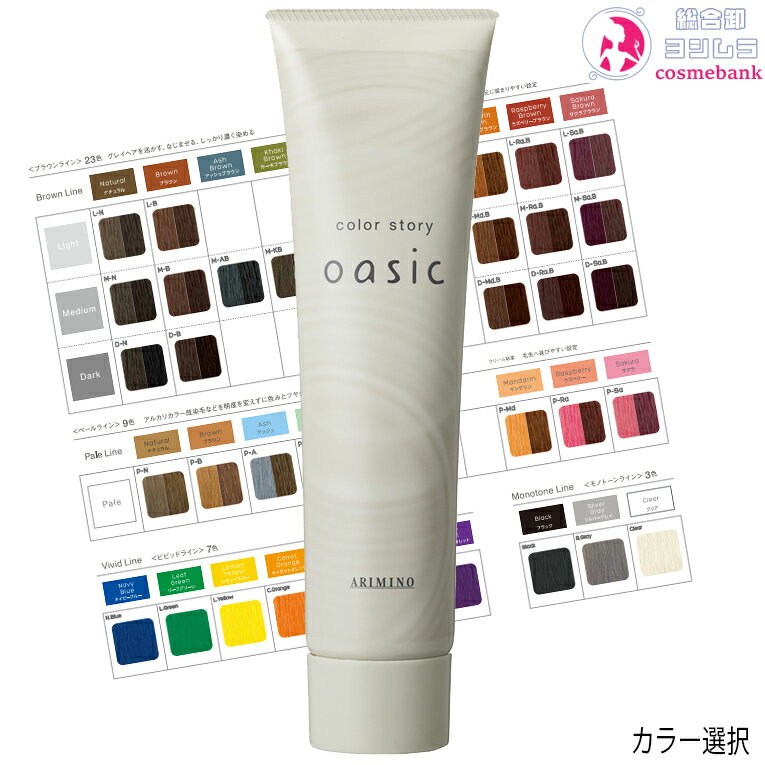 ARIMINO COLOR STORY OASIC Pale Vivid and monotone line acid color Made in JAPAN アリミノ カラーストーリー オアシック ペールライン・ビビッドライン・モノトーンライン アシッドカラー 高い染色力、自然な退色 潤いがあり流し時のきしみが少なく、仕上がりはやわらかくふんわり質感 根元で止まり、毛先に伸びる、自由自在な操作性...