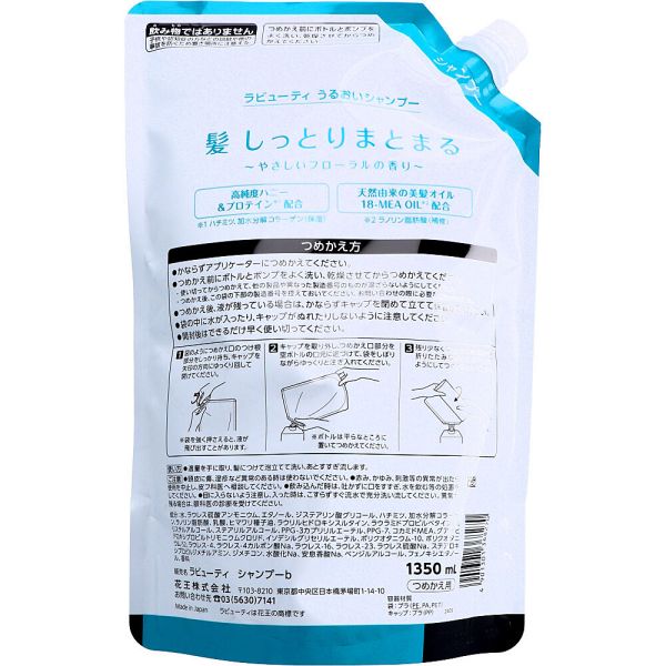 花王 LABEAUTY うるおいシャンプー つめかえ用 1350mL 1個(368270) 目安在庫=○