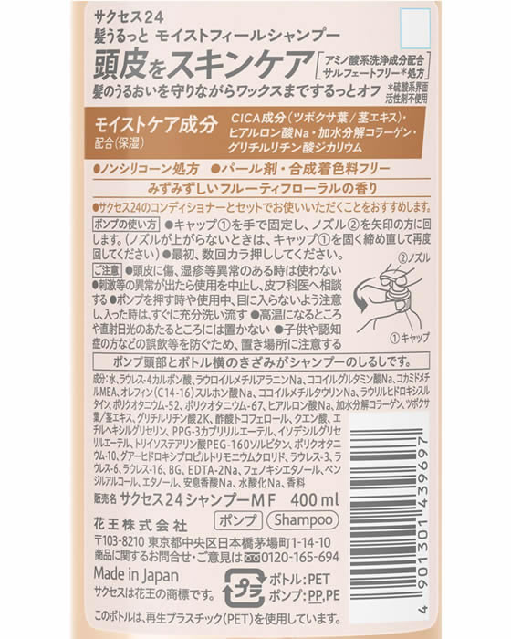 【レビュー投稿で100円OFFクーポン】KAO サクセス24 モイストフィールシャンプー 本体 400mL 花王 Kao 製品 シャンプー リンス ヘアケア