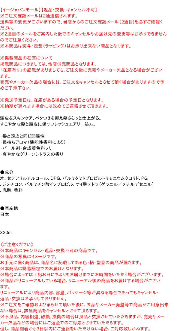 頭皮をスキンケア、ベタつきを抑え髪さらっと仕上がる。すこやかな髪と頭皮に保つフレッシュエアリー処方。・髪と頭皮と同じ弱酸性・長持ちアロマ(機...