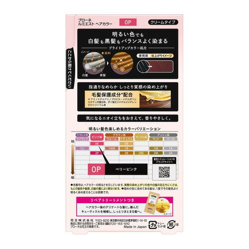 花王 ブローネ ルミエスト ヘアカラー 0P ベリーピンク (108g)