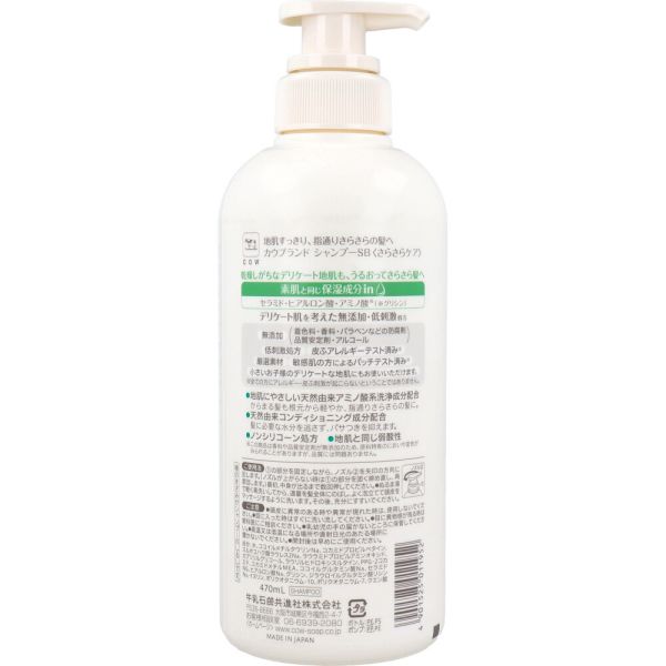 [ 単品送料込 ] カウブランド 無添加シャンプー うるおいケア ポンプ付 470mL [4901525011976] 地肌 保湿 無添加 ノンパラベン ボトル 牛乳石鹸