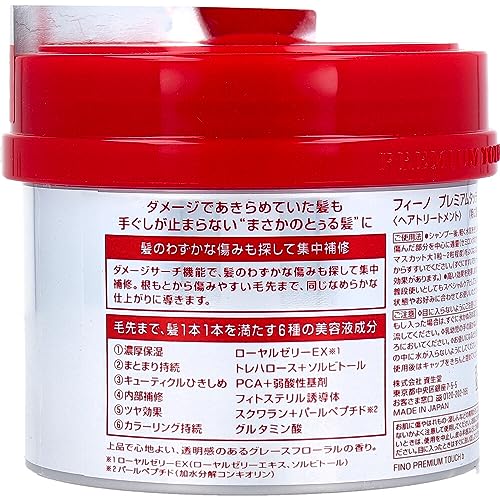 商品説明 商品名 フィーノ プレミアムタッチ 浸透美容液ヘアマスク230g 詳細 美容液成分をギューッと凝縮した、ダメージケア用トリートメントです。 傷みきった毛先まで、しっとりとなめらかでスルスルの指触りに仕上げます。 枝毛・切れ毛でお悩みの方などにオススメです。 洗い流すインバスタイプ。 関連商品2個セット 資生堂 フィーノ プレミアムタッチ 浸透美容液ヘアマスク2...資生...