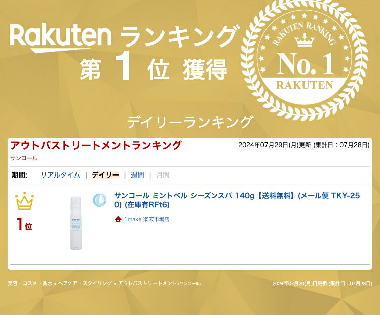 商品詳細 商品名 サンコール ミントベル シーズンスパ 140g メーカー サンコール シリーズ ミントベル 内容量 140g 商品説明 頭皮をすっきり爽快にし、うるおいを与える頭皮用スプレーです。 心地よい清涼感を与える天然メントール(涼感成分)、マンダリンオレンジ果皮エキス(保湿成分)、炭酸ガス(噴射剤)を配合。 さらにセンブリエキス(保湿成分)やプラセンタエキス(保湿成分)がダメージを受けた...