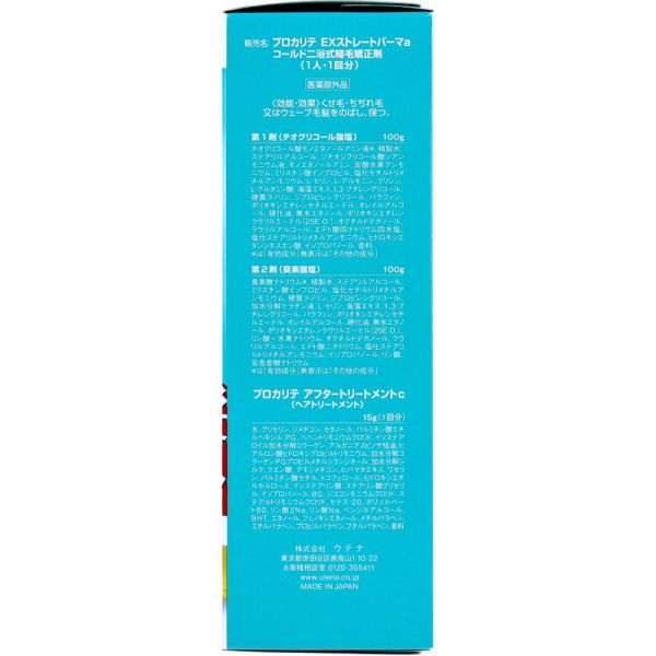 ウテナ プロカリテ 縮毛矯正セット ロング用 第1剤:100g 第2剤:100g ホットアイロンマニキュア:15g スムースキープエッセンス:5g×3回分