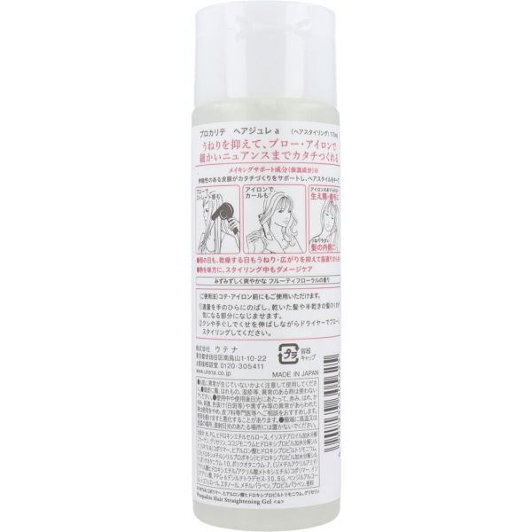 ギフトサービスについて株式会社ウテナ個装サイズ:45X154X45mm個装重量:約215g内容量:175mLケースサイズ:43.6X18.3X20.9cmケース重量:約8.65kg製造国:日本【発売元:株式会社ウテナ】【化粧品】プロカリテ ヘアジュレa【成分】水、PG、ヒドロキシエチルセルロース、イソステアロイル加水分解コラーゲン、グリセリン、ココジモニウムヒドロキシプロピル加水分解シルク、(V...