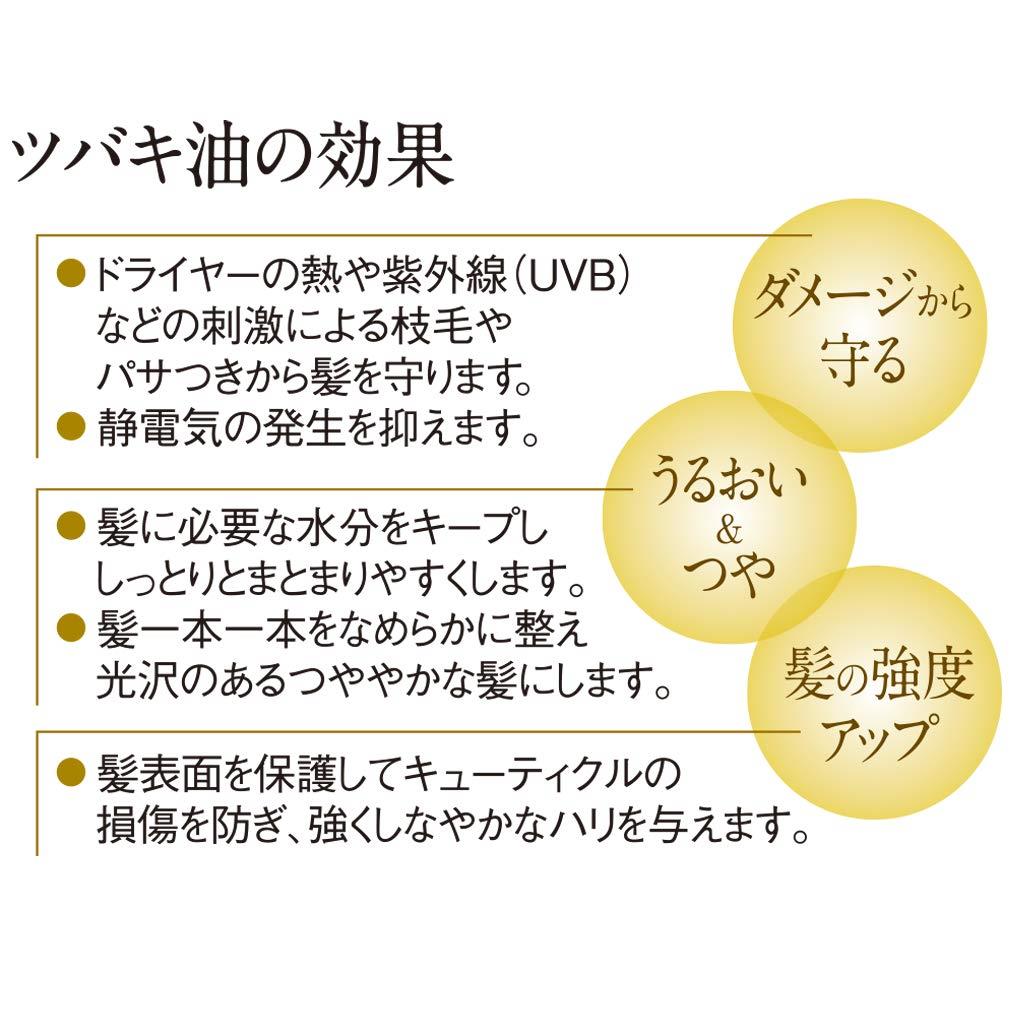 広がる髪も、しっとりまとまる■ 製品特長●椿の種子から採った天然椿油100% 髪、頭皮、肌のうるおいを保ち、すこやかに、美しく導きます。少量でしっかりうるおい、 においもベタつきもなく、毎日のお手入れからスペシャルケアまで、幅広くお使いいただけます。 ドライヤーの熱や紫外線(UVB)などの刺激による枝毛やパサつきから髪を守ります。 静電気の発生を抑えます。 髪に必要な水分をキープし、しっとりまとま...