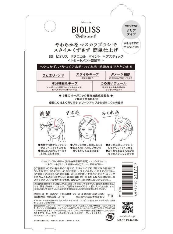 ◆ SS ビオリス ボタニカル ポイント ヘアスティック 8g 1本 / やわらかブラシ 前髪 アホ毛 おくれ毛に シャンプーで簡単オフ グリーンアップル&ゼラニウムの香り