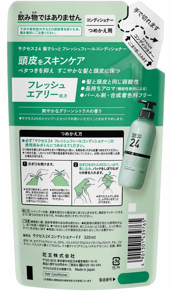 【レビュー投稿で100円OFFクーポン】KAO サクセス24 フレッシュフィールコンディショナー 詰替 320mL 花王 Kao 製品 シャンプー リンス ヘアケア