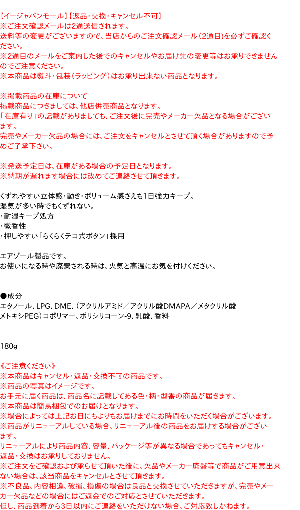 くずれやすい立体感・動き・ボリューム感さえも1日強力キープ。湿気が多い時でもくずれない。・耐湿キープ処方・無香料・押しやすい「らくらくテコ式...