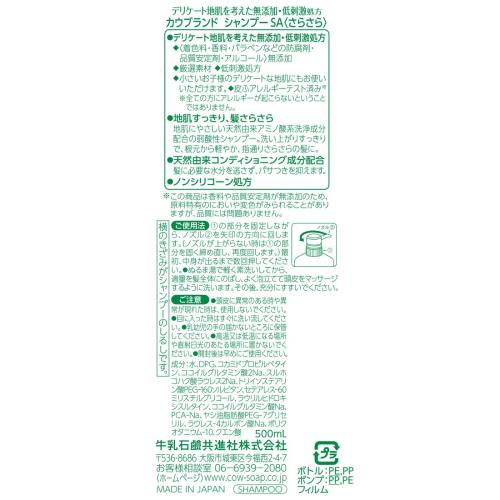 カウブランド 無添加 シャンプー さらさら ポンプ付 500ml