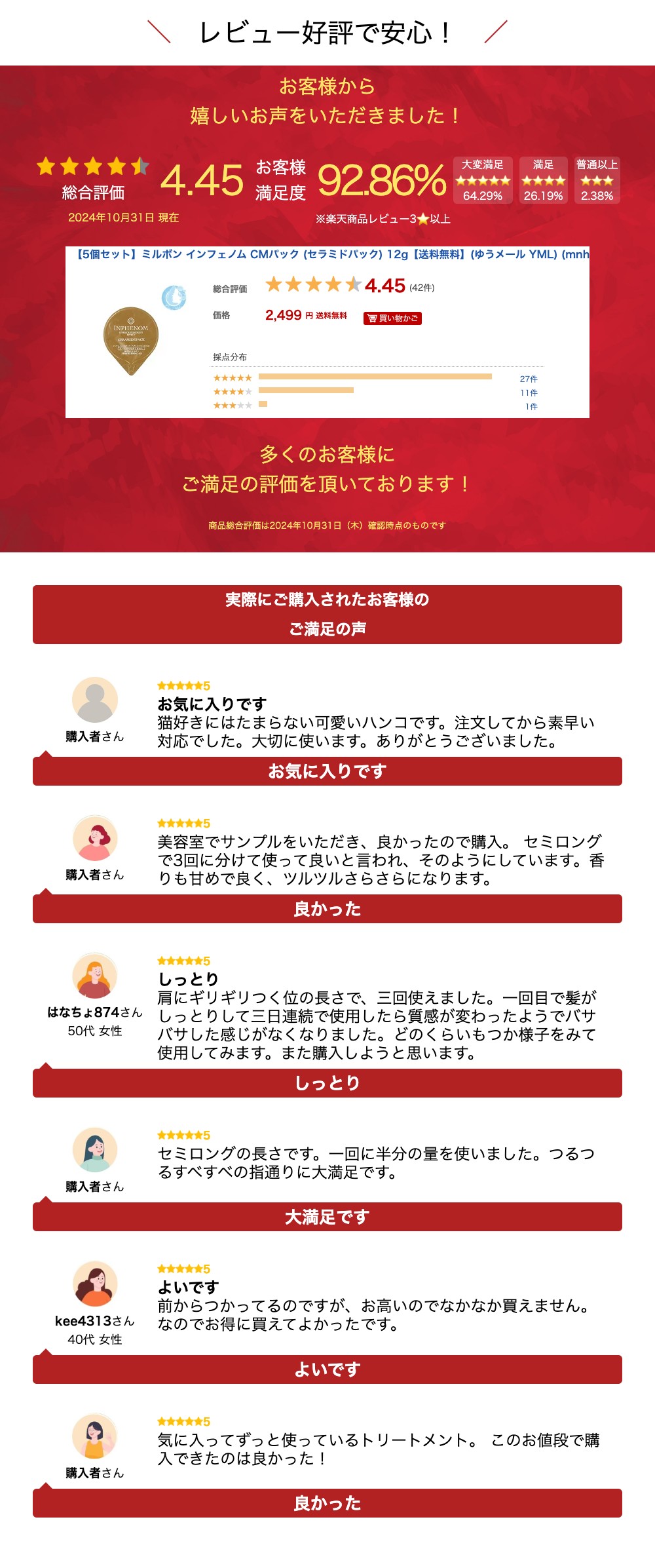 商品特徴 クセ毛の毛髪構造に ミクロとマクロのWアプローチ。 湿気に揺らぎにくい、おさまりやすい髪へ。 週1回の集中ケアでダメージを徹底補修。特にうねりや広がり、まとまりの悪さが気になる時期でもやわらかくおさまりやすい髪に導きます。 アミノケラチンコンプレックス / アセチルシステイン / キウイエキス / セラミド / 18パーフェクター / 高延展性オイル配合 [ 関連ワード : カラーセーブ...