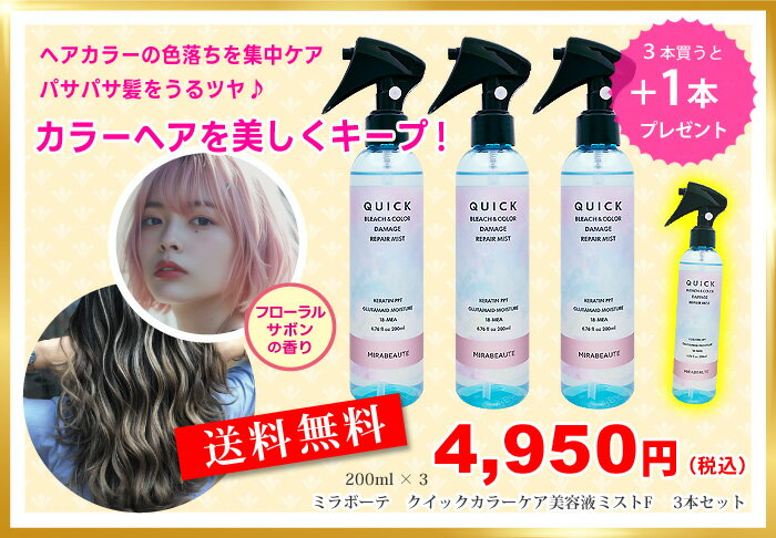 ★3本購入で1本プレゼント 髪にスプレーするだけで弱酸性うる艶髪&髪色キープ ヘアカラー、ハイトーンカラー、ブリーチ毛から、白髪染めまで全カラーヘア対応!