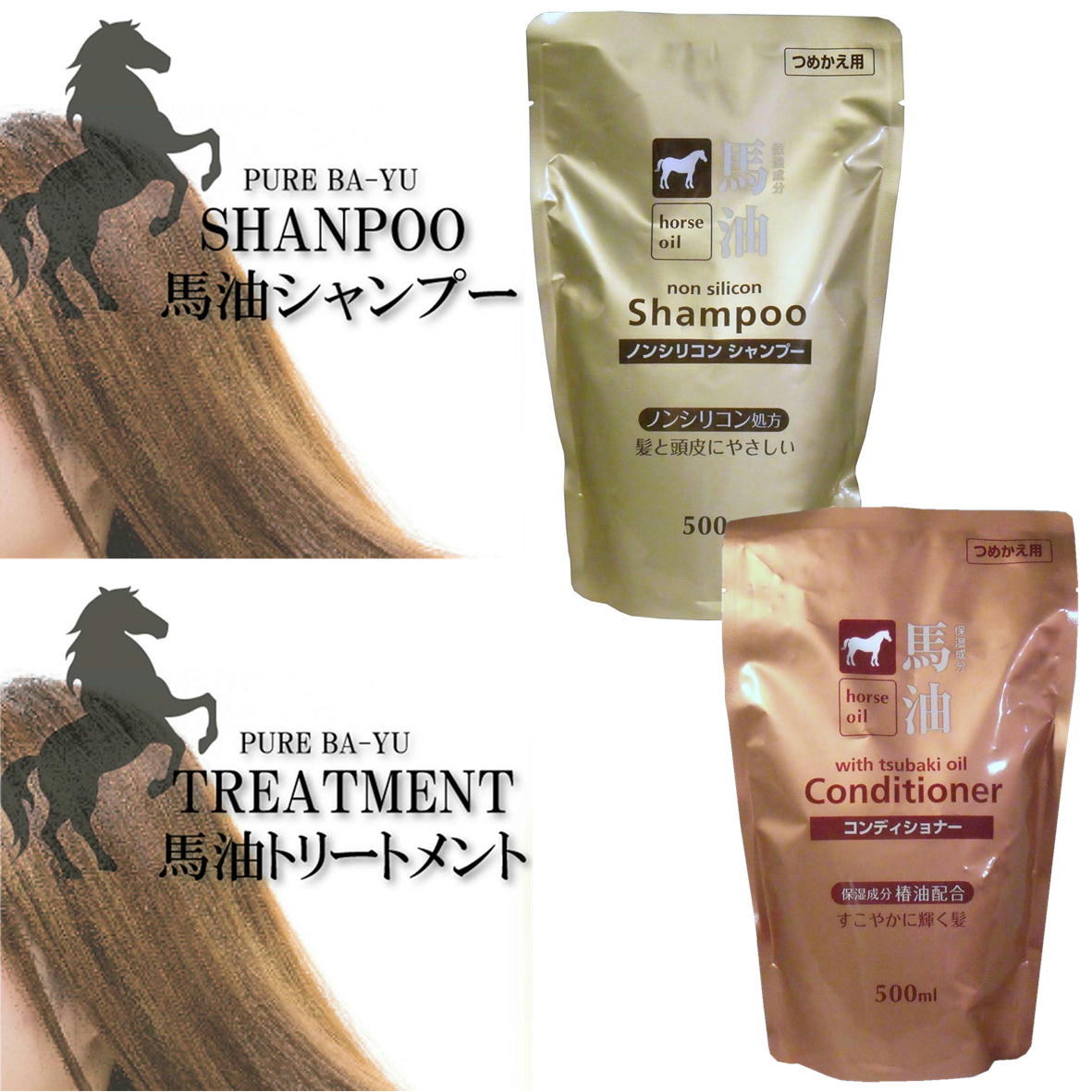 馬油シャンプー 馬油コンディショナー 椿油配合 詰替え用 500mL 送料無料 まとめ買い 馬油 つめかえ つめ替え ばあゆ バーユ つめかえ用
