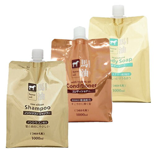 【熊野油脂】馬油シリーズ 詰替え 1000mL(シャンプー・コンディショナー・ボディソープより選択) - 馬油成分がお肌に必要なうるおいをしっかり補います。