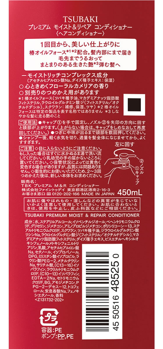 ファイントゥデイ TSUBAKI(ツバキ)プレミアムモイスト&リペアコンディショナー ポンプ 本体 450mL