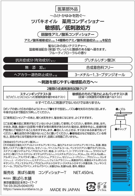 【マラソン限定★ポイント2倍】【お取り寄せ】黒ばら本舗 ツバキオイル 薬用コンディショナー 450mL コンディショナー シャンプー リンス ヘアケア