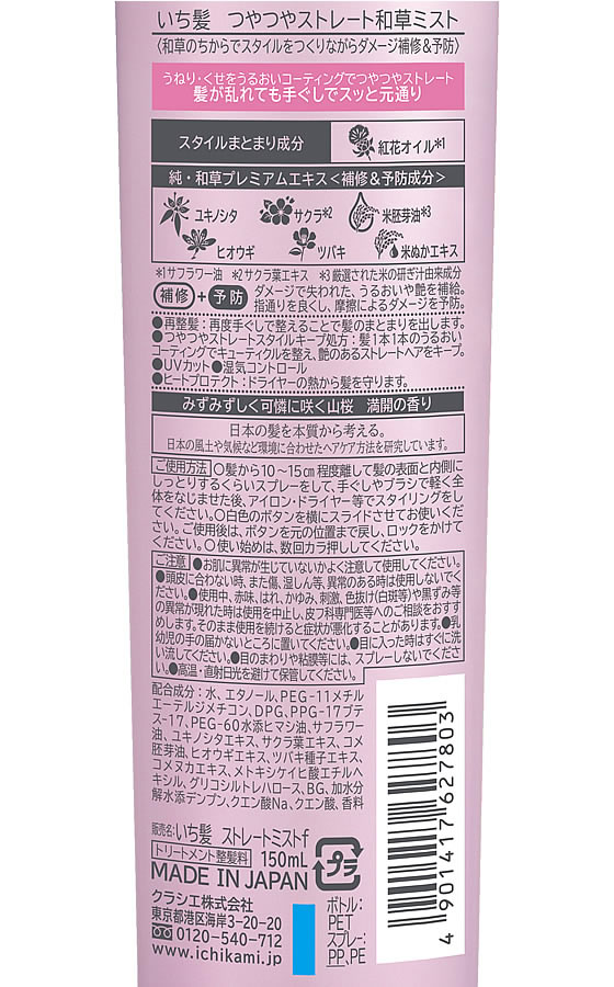 生搾り椿油配合(保湿・ツヤ成分)で健やかな美髪に導く。