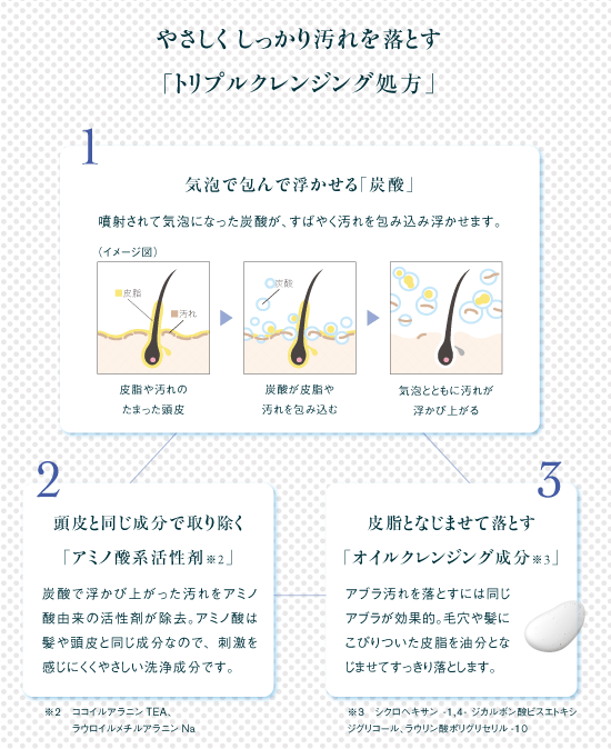 センシテイブな地肌や髪を清潔にしながら、すこやかさを保ちます